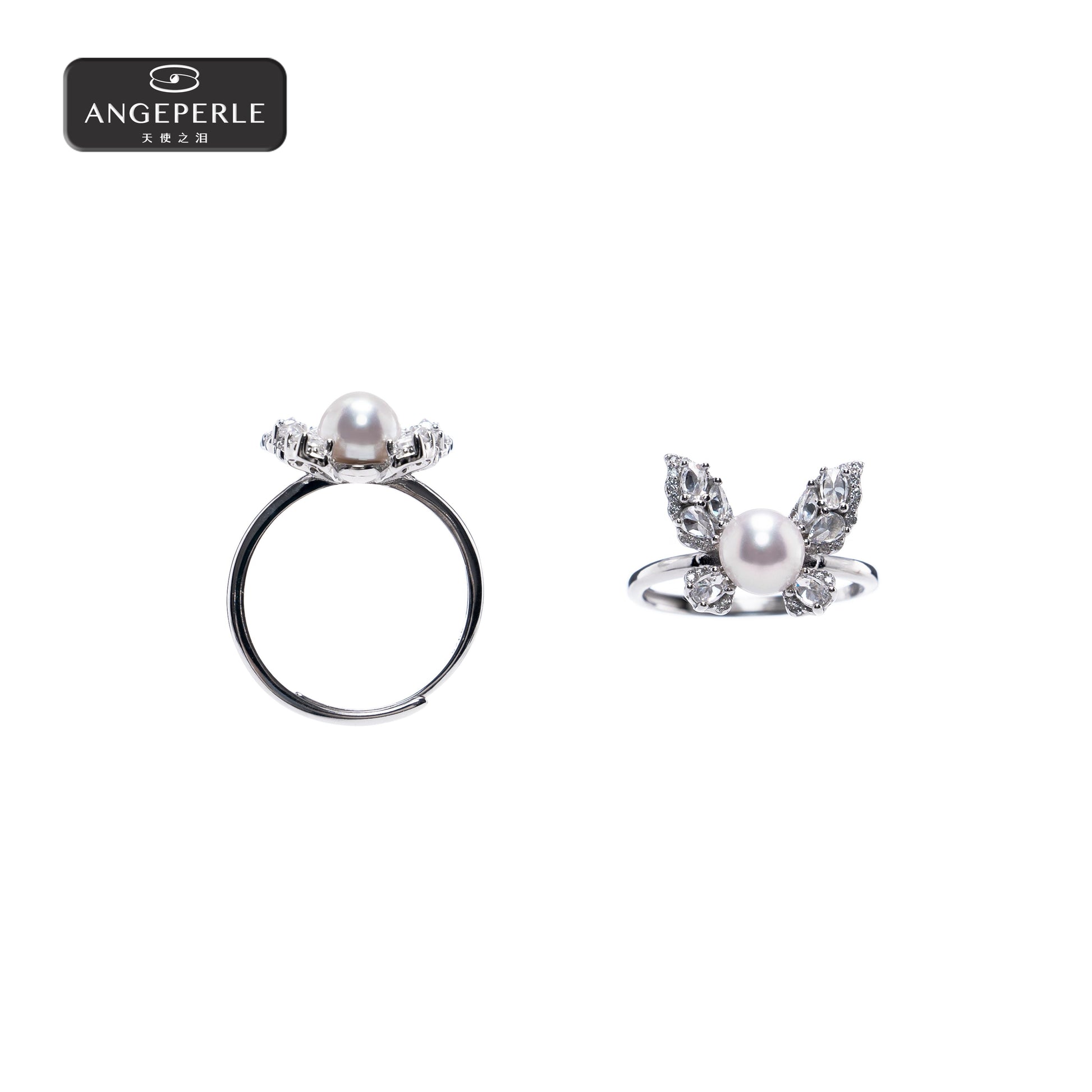 天使之泪 S925银淡水珍珠珈白丽蝴蝶戒指(TSSLF176)