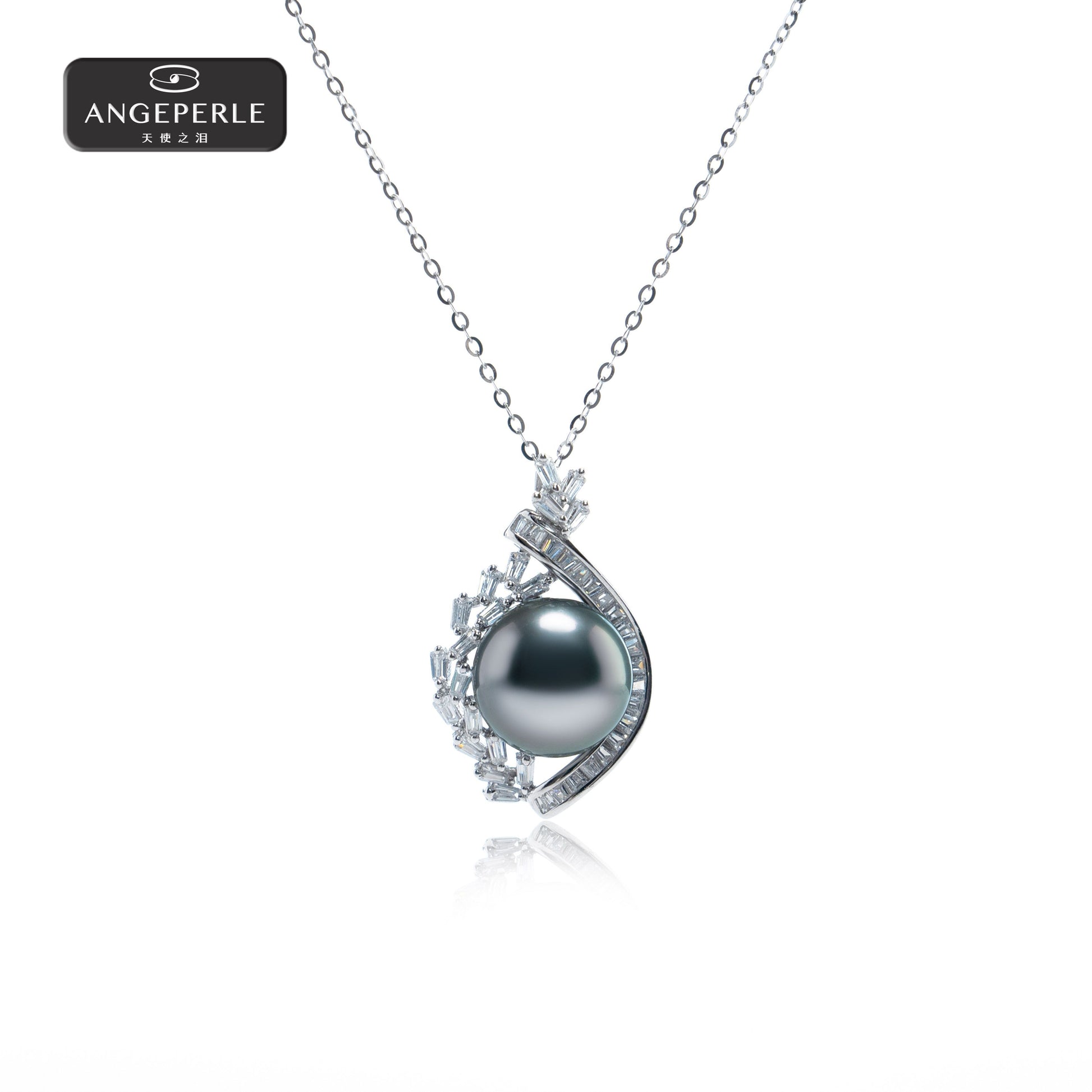 エンジェルズティアーズ S925 スターリングシルバー プラチナ グレー シーウォーターパール タヒチアンペンダントTSSLF190