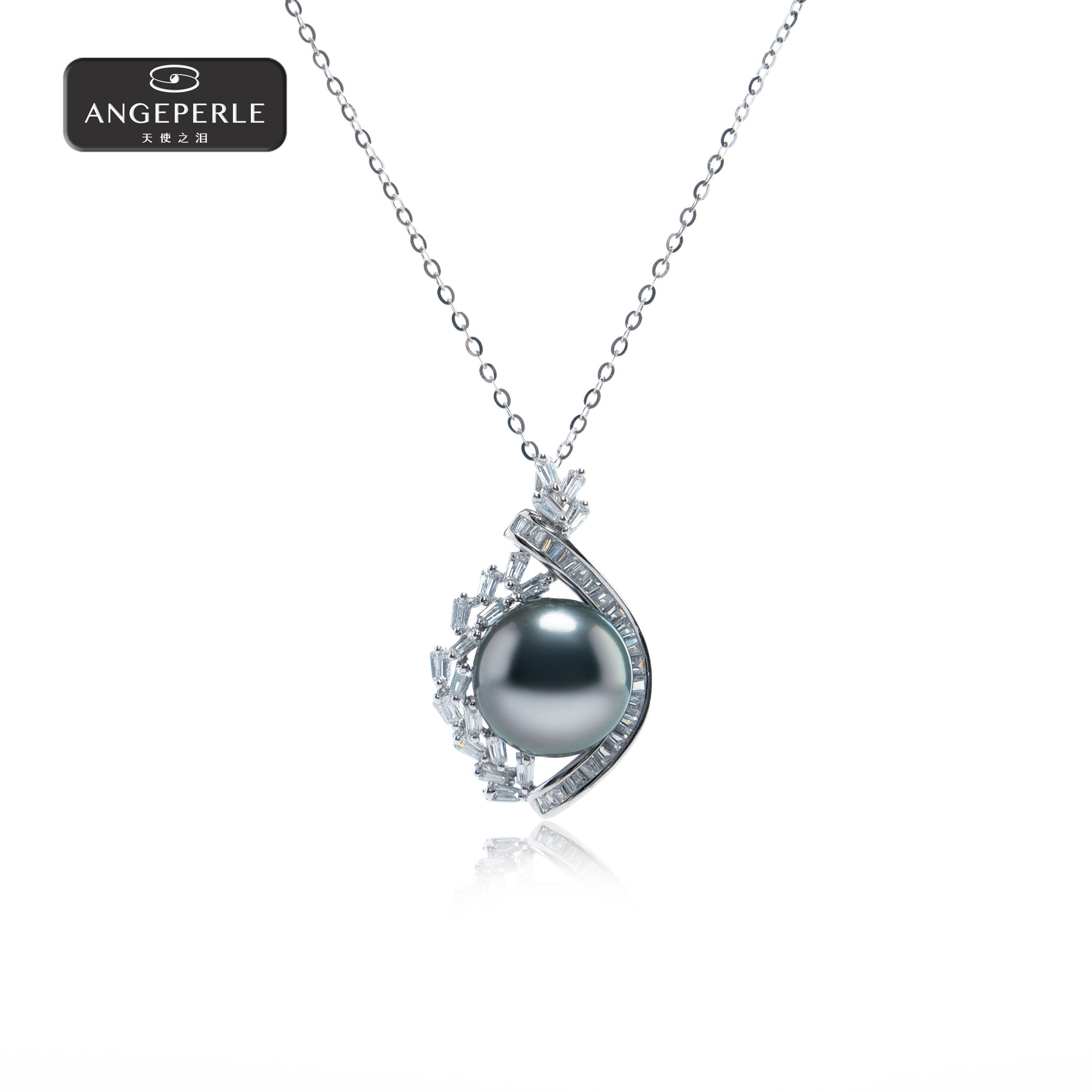 ANGELPERLE S925 Silver Platinum Gray Seawater Pearl Tahitian Pendant (TSSLF190)