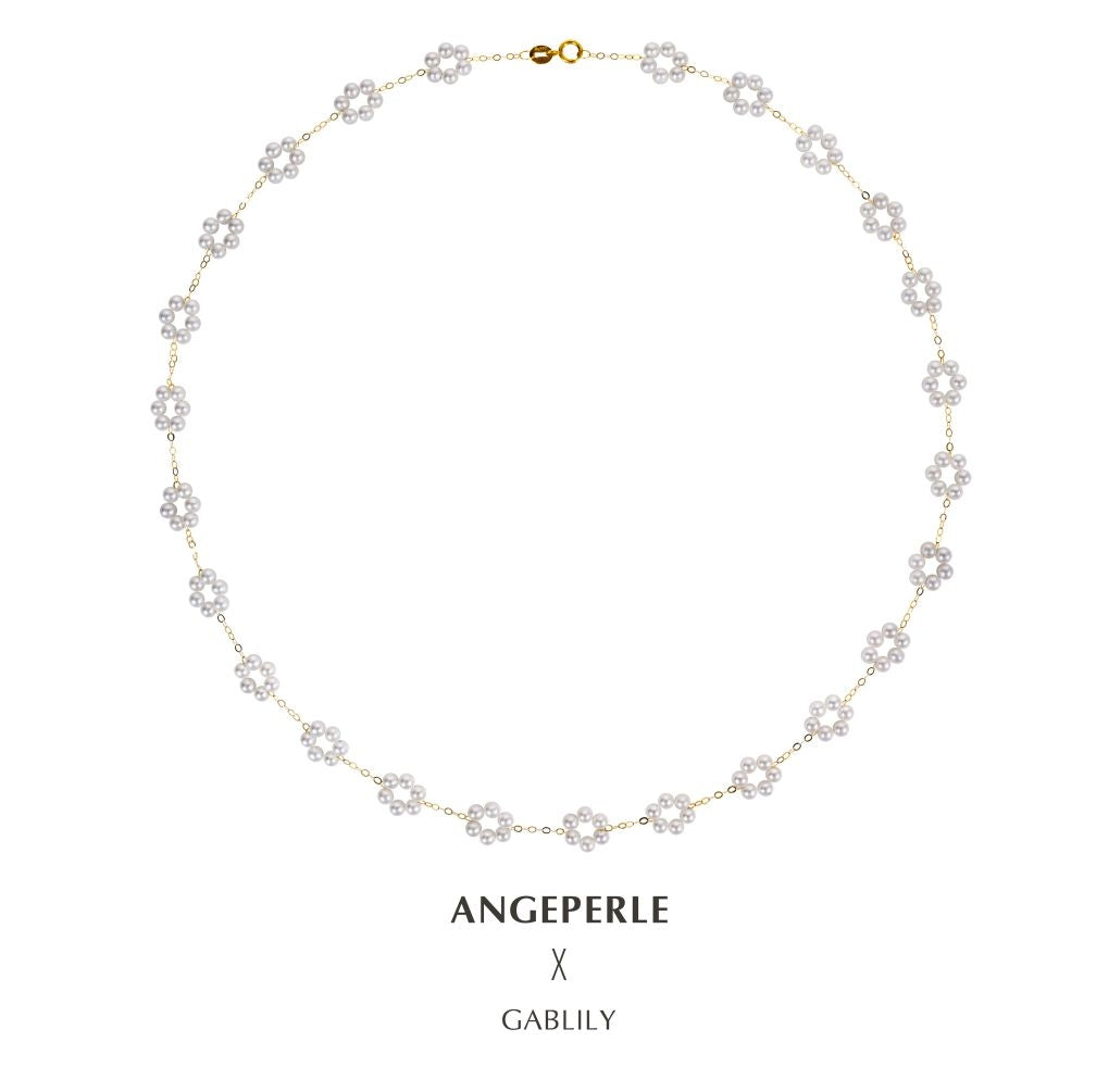 天使之淚 18K金淡水珍珠白麗小米珠繁花滿天星項鍊(TSGY096)