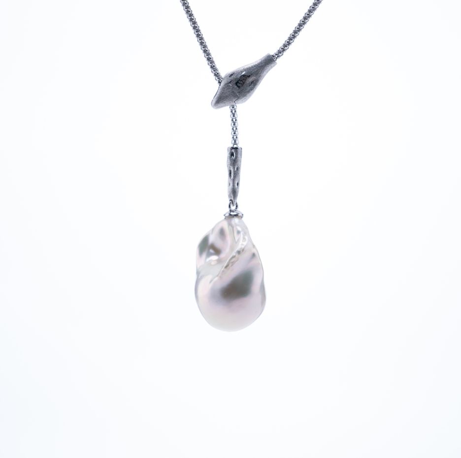 ANGELPERLE S925 Silver Freshwater Pearl Baroque Y-Chain Pendant (TSSLF237)