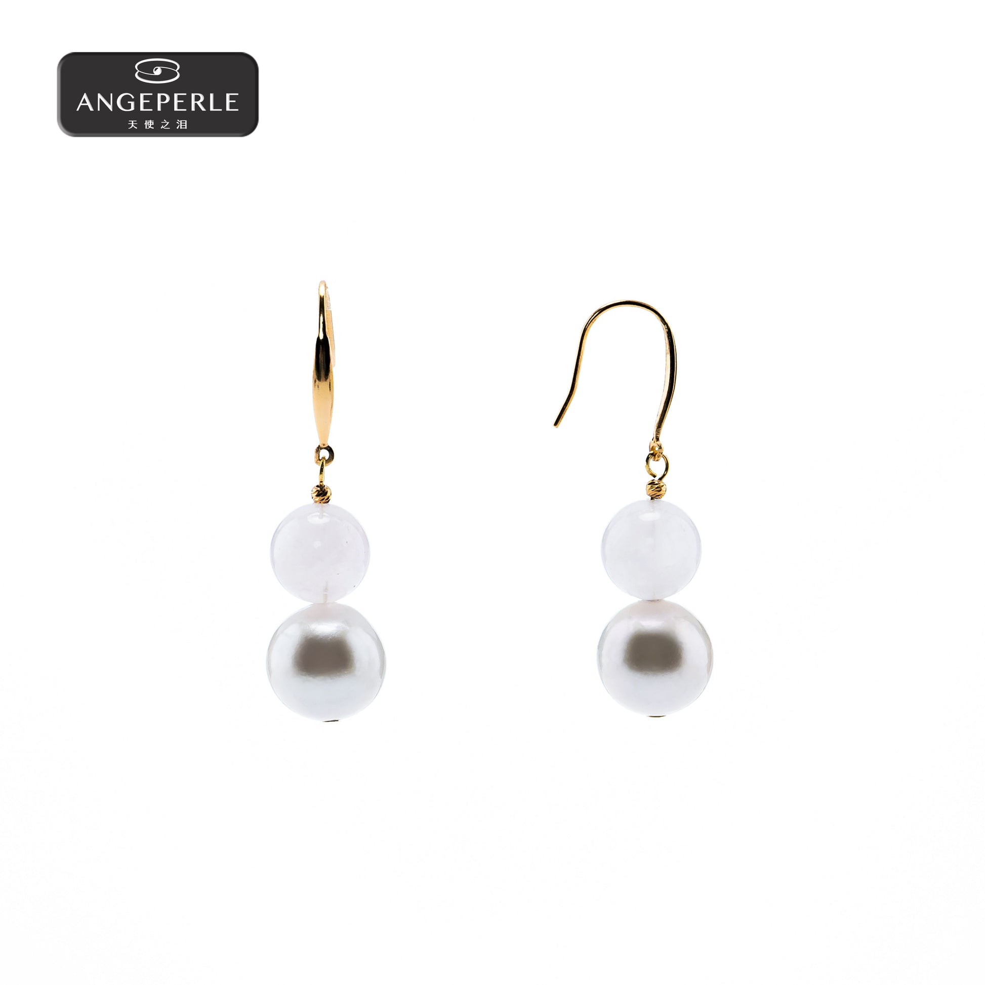 ANGELPERLE S925 Silver Freshwater Pearl Gablily Crystal Pearl Earrings (TSYH12)