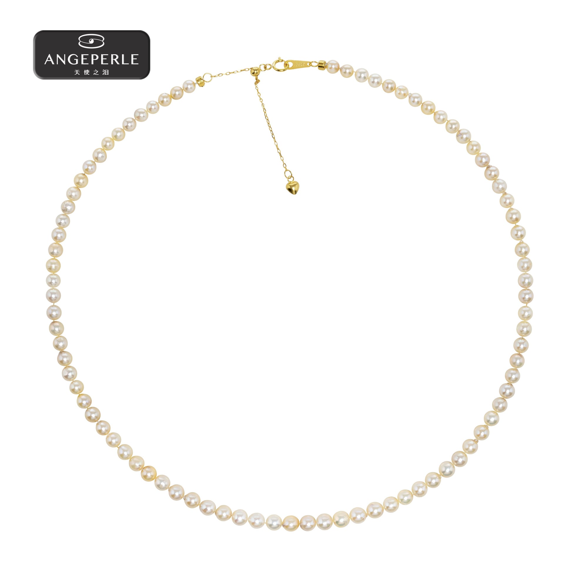 ANGELPERLE S925 Silver Seawater Pearl Feather Emperor Gold Baroque Rice Pearl Necklace(TSJ170)