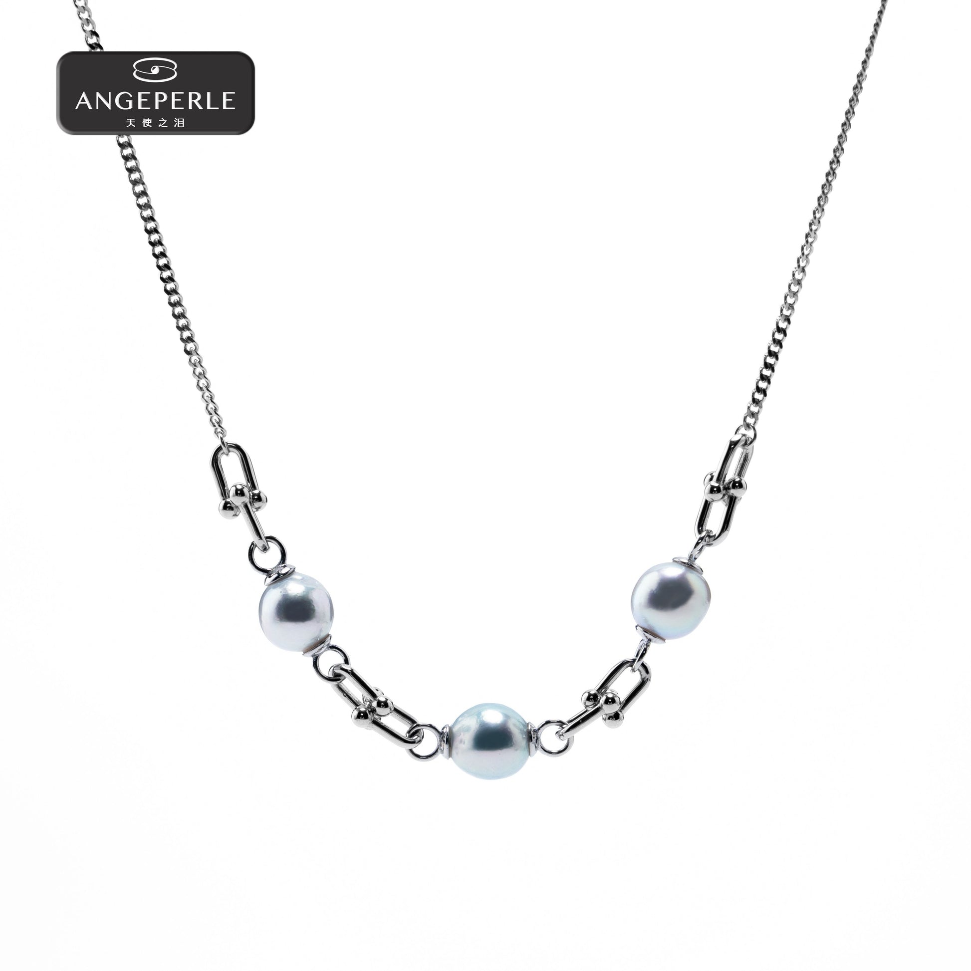 ANGELPERLE S925 Silver Seawater Pearl Madama Horseshoe Clasp Pendant (TSZZN116)