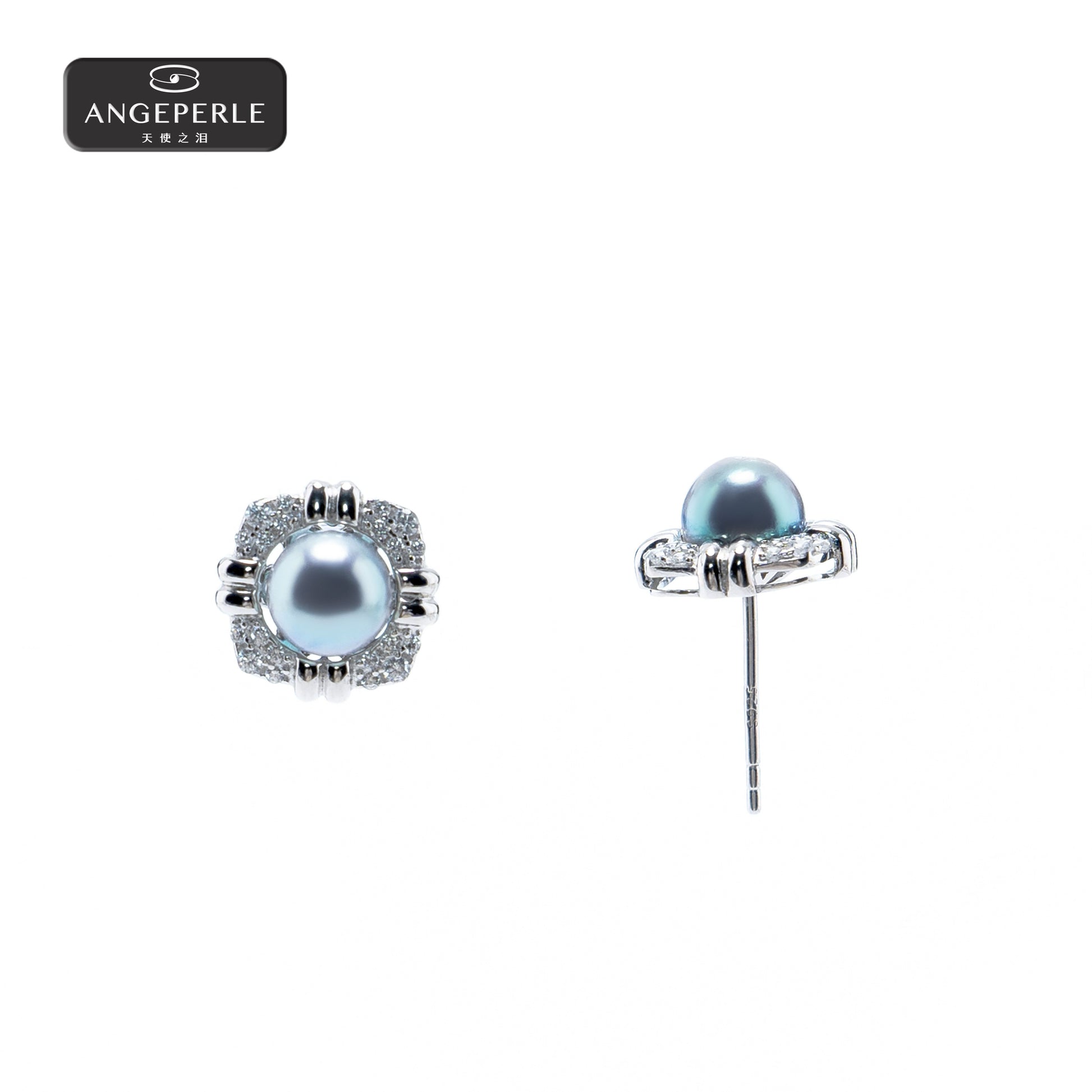 ANGELPERLE S925 Silver Seawater Pearl Madama Pearl Stud Earrings (TSZZN107)