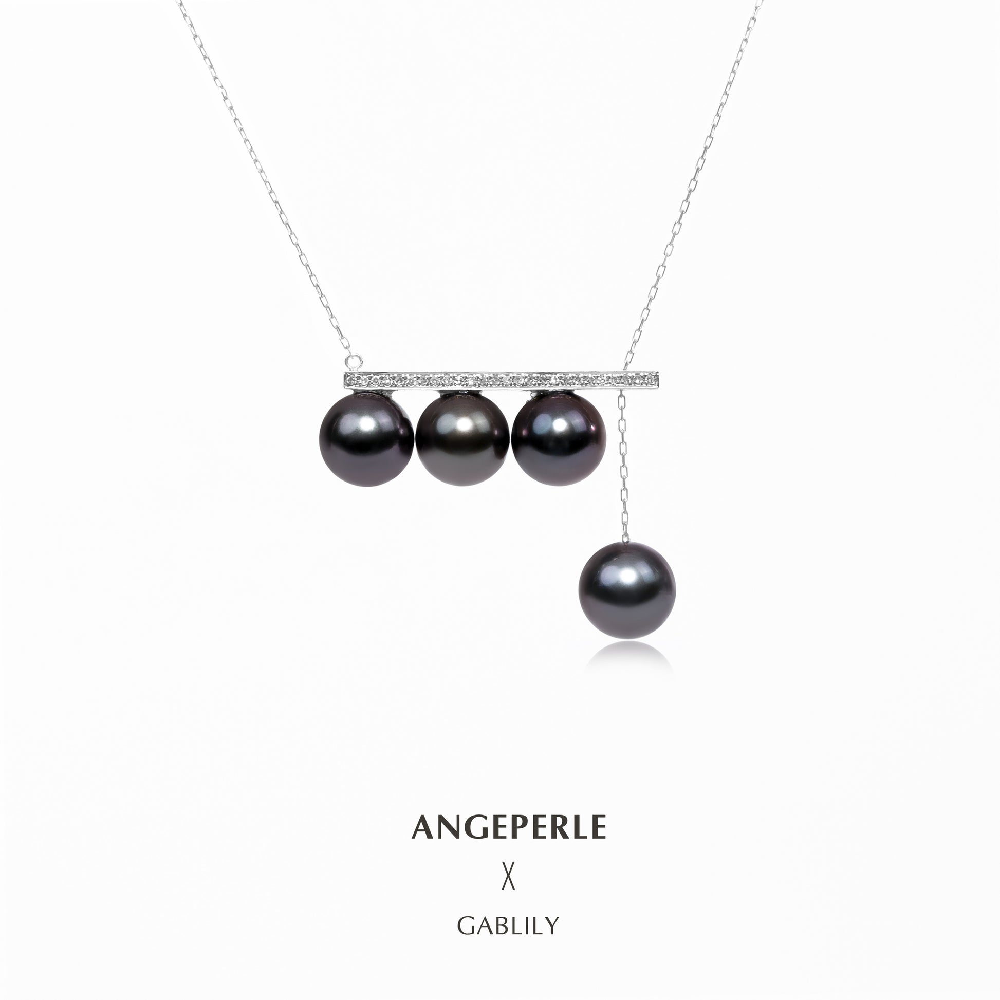 ANGEPERLE 18K Gold Diamond Seawater Pearl Tahitian Balance Beam Pendant(TSGY034)