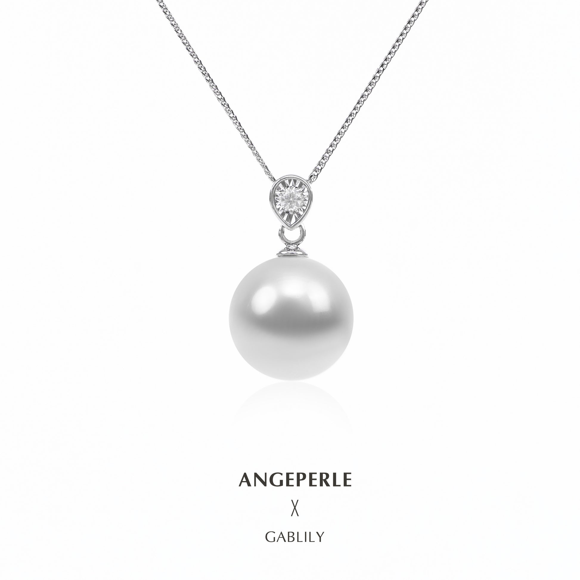 ANGEPERLE Diamond Seawater Pearl Australian White Chopin Chain Pendant(TSJCY248)