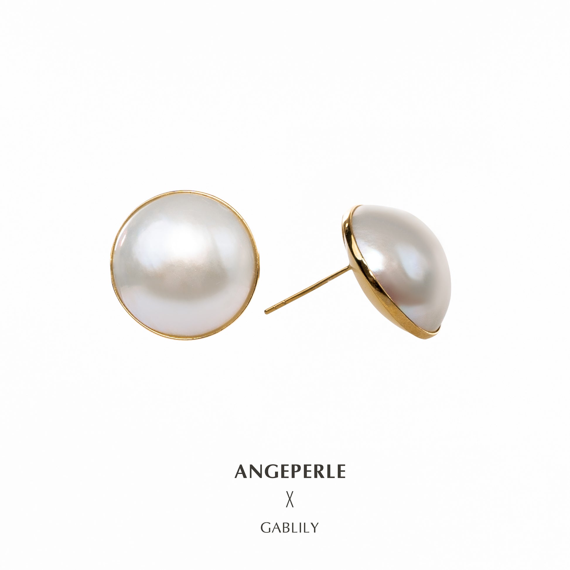 ANGEPERLE Gold-plated Seawater Mabe Pearl Stud Earrings