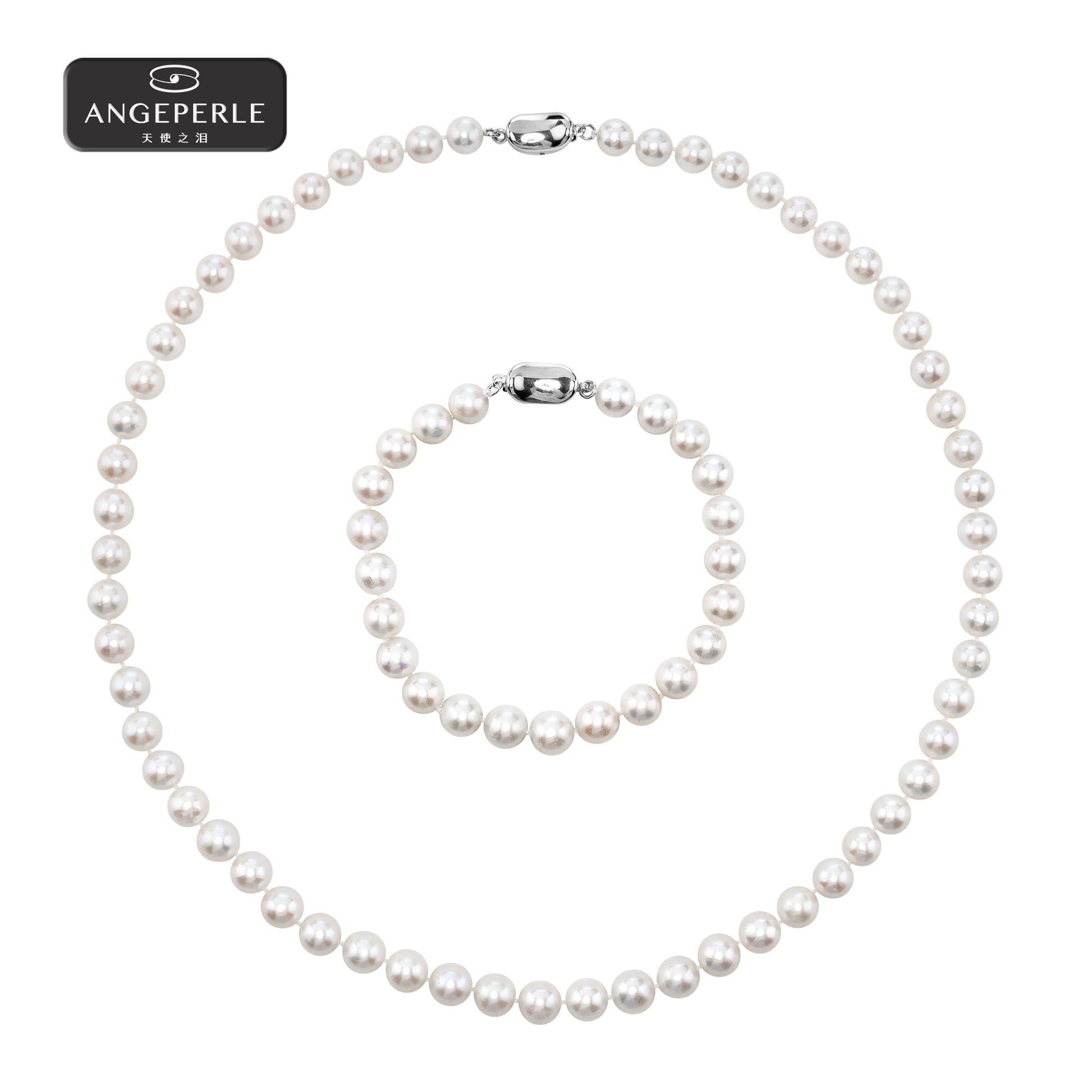 ANGEPERLE S925 Silver Freshwater Gablily Pearl Necklace with a Free Bracelet(TSJ543)