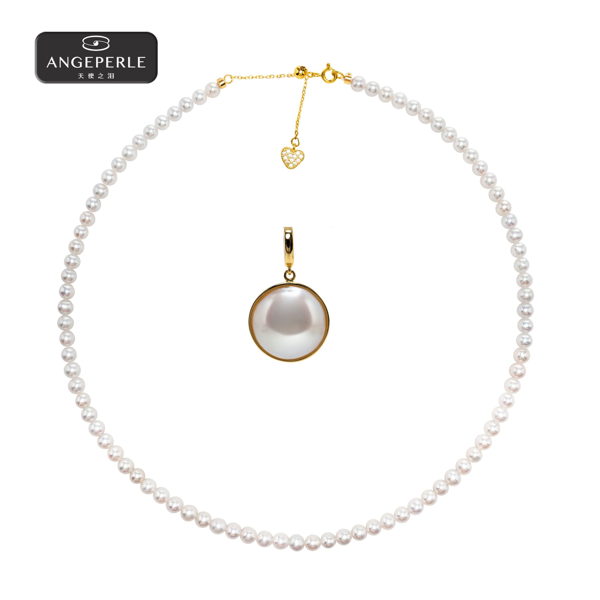 ANGEPERLE S925 Silver Freshwater Gablily Pearl Necklace with a Free Seawater Mabe Pearl Pendant(TSSL188)