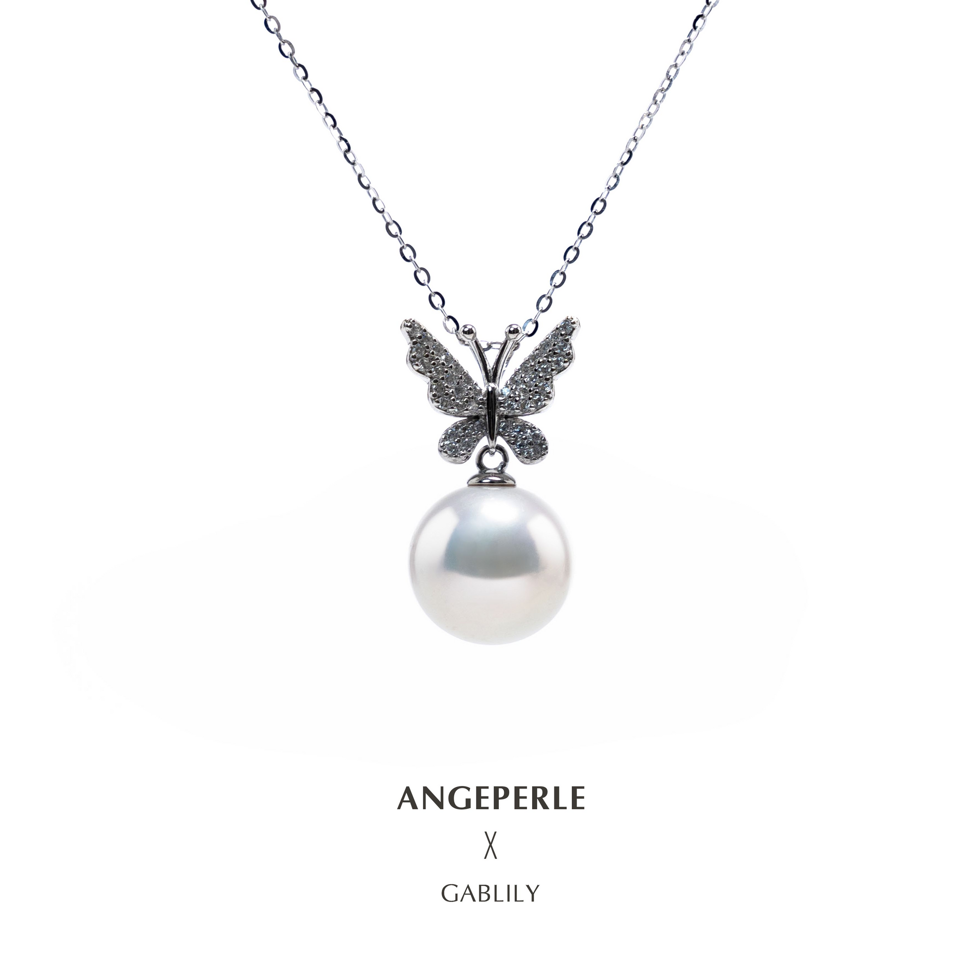 ANGEPERLE S925 silver freshwater pearl Gablily butterfly pendant(TSSLF31)