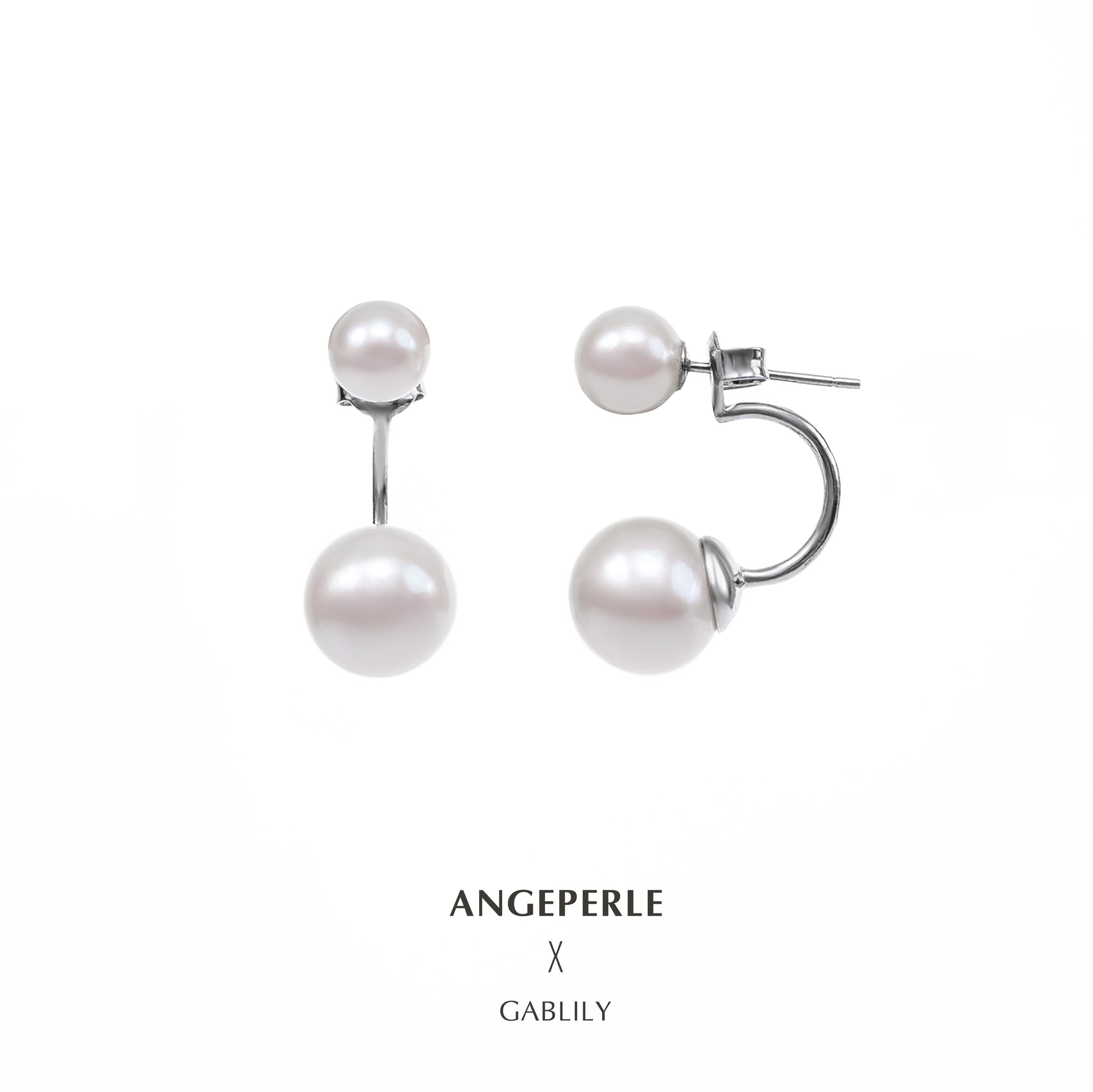 ANGEPERLE S925 Silver Freshwater Pearl Jia Baili Double Pearl Earrings(TSZL062)