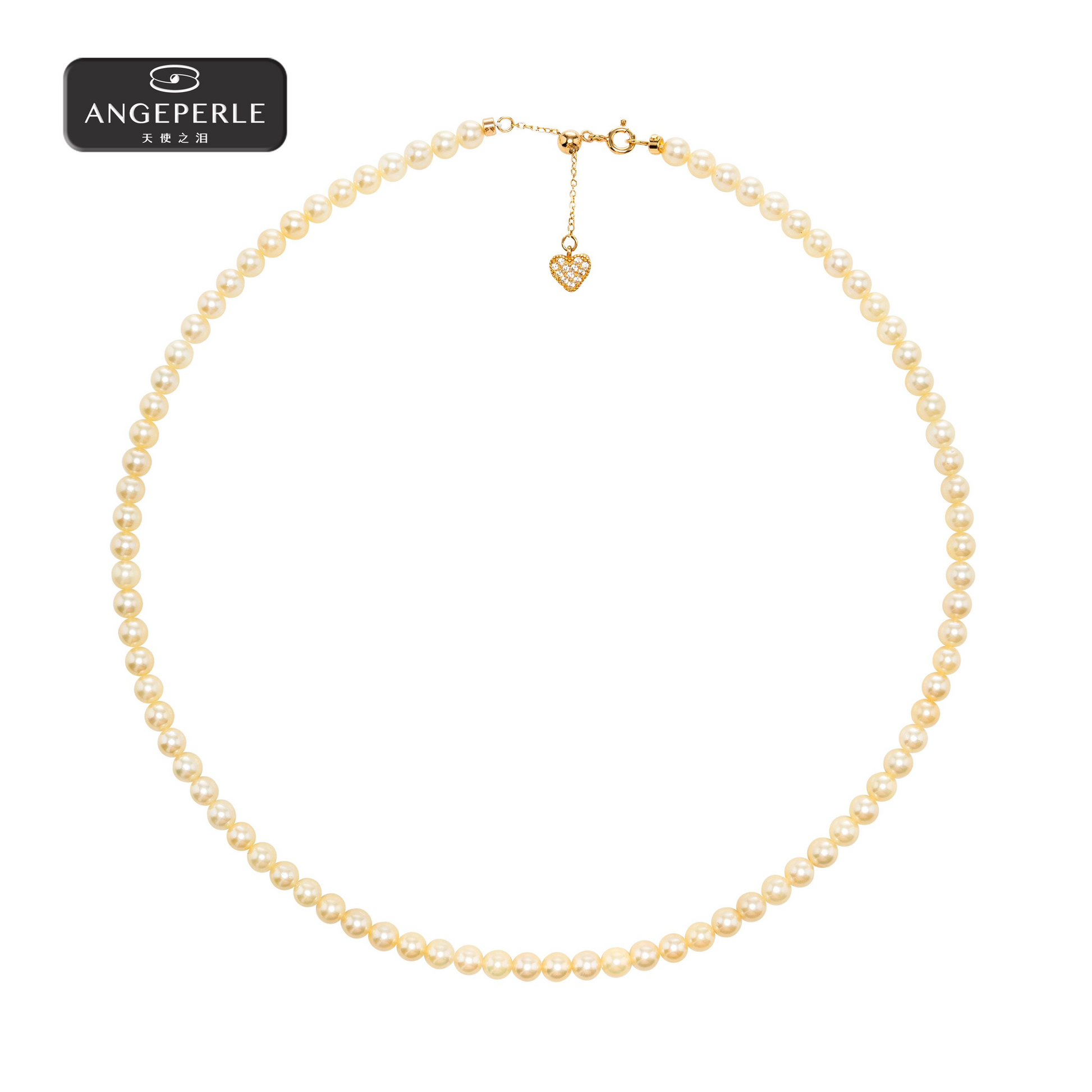 ANGEPERLE S925 silver seawater pearl feather golden pearl necklace 4-5mm(TSZZN82)