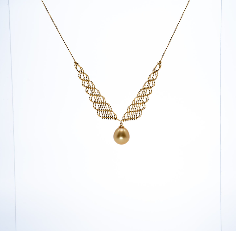 ANGEPERLE S925 silver seawater pearl South Sea Golden Pear pendant 11-12mm(TSZZN140)