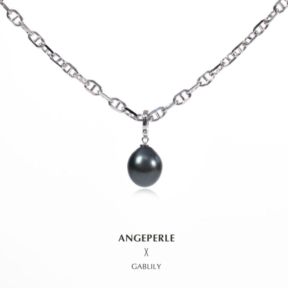ANGEPERLE S925 Silver Seawater Pearl Tahitian Baroque Pig Nose Necklace (TSJCY413)
