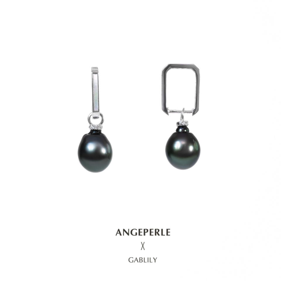 ANGEPERLE S925 Silver Seawater Pearl Tahitian Shape Earrings (BPJCY317)